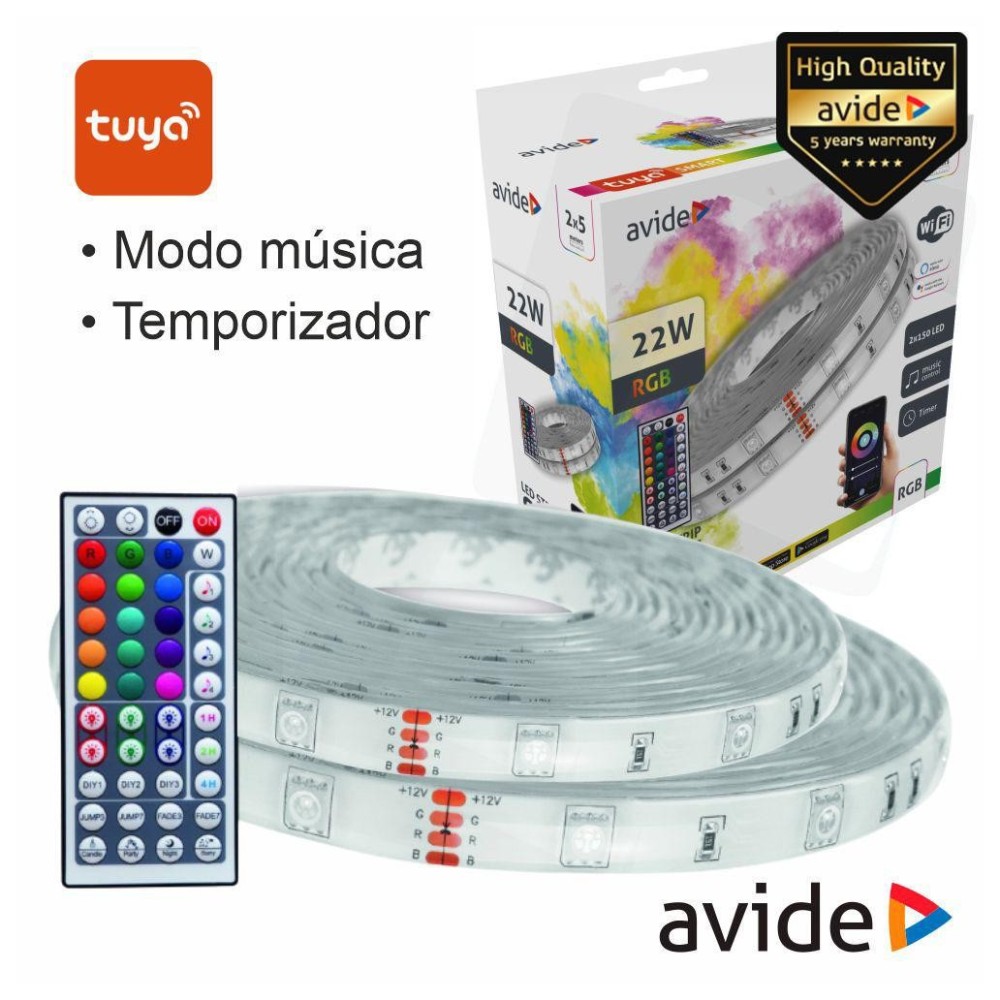 Kit de 2 Fitas LED RGB, 12V, 2x5 metros, IP65, WIFI+IR, app TUYA, da marca AVIDE