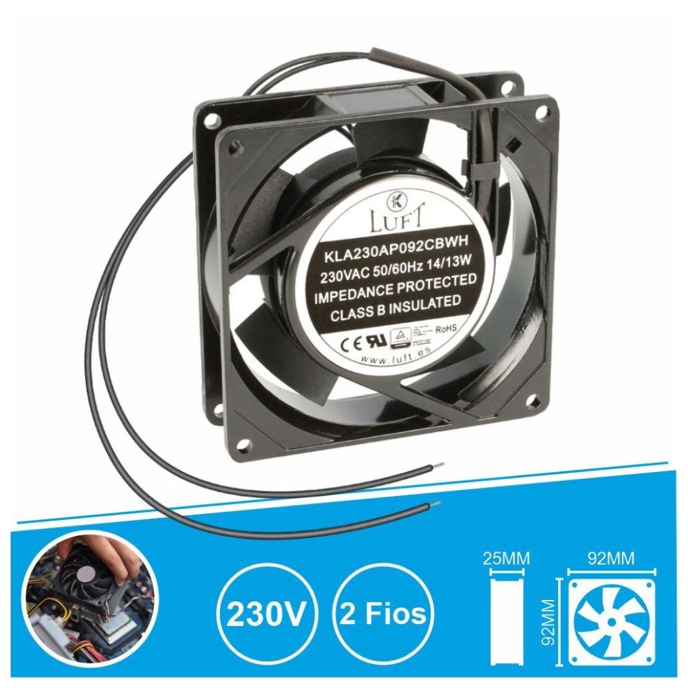 Ventoinha 230V, 92x92x25mm, 2 Fios, LUFT KLA230AP092CBWH
