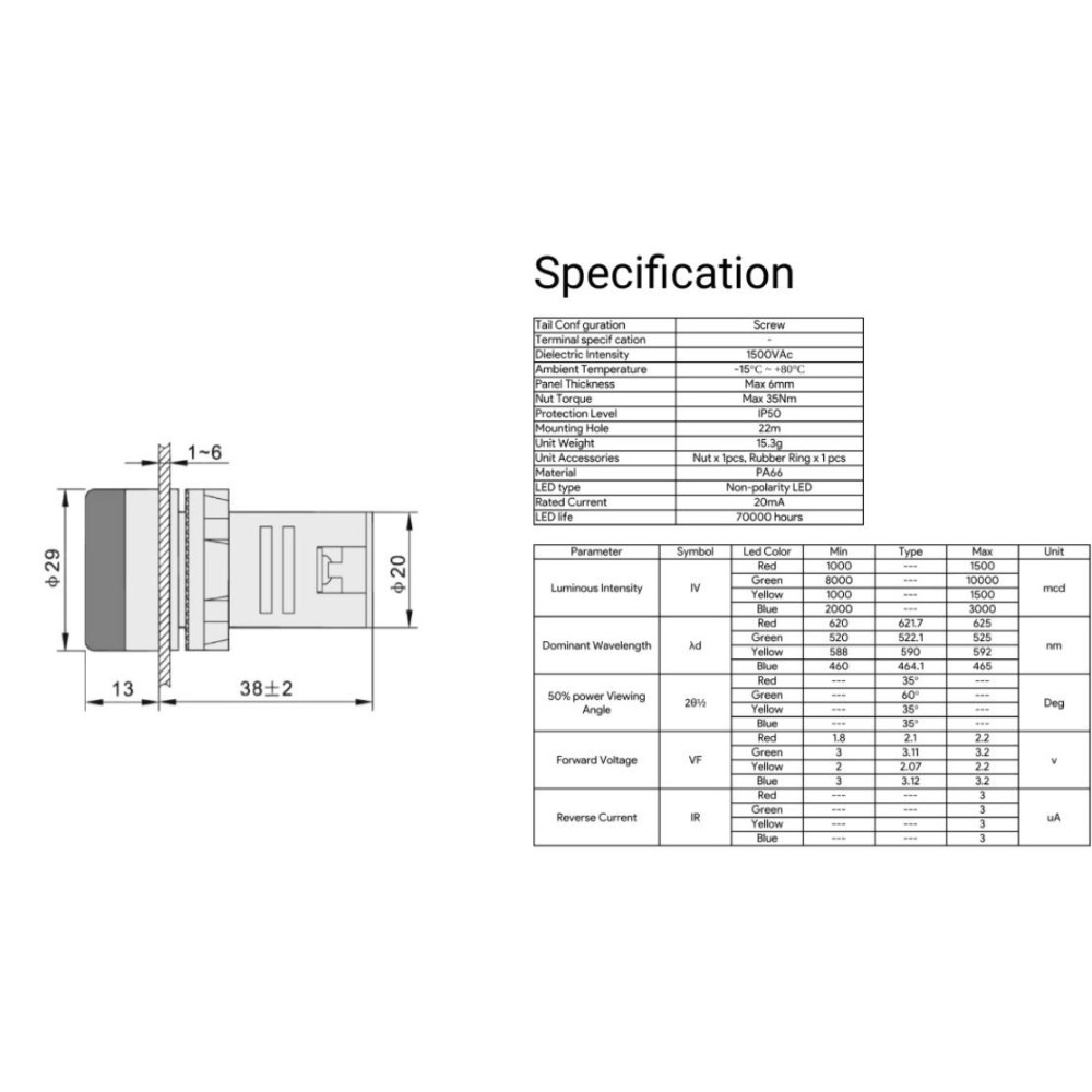 Indicador/avisador redondo de painel, LED industrial de 29 mm, 24 V, verde