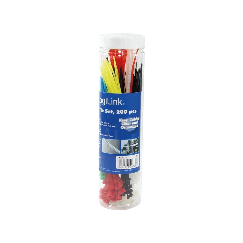 Conjunto de 200 abraçadeiras em poliamida, UL94V-2, nas cores amarelo, azul, natural, preta, verde e vermelho.