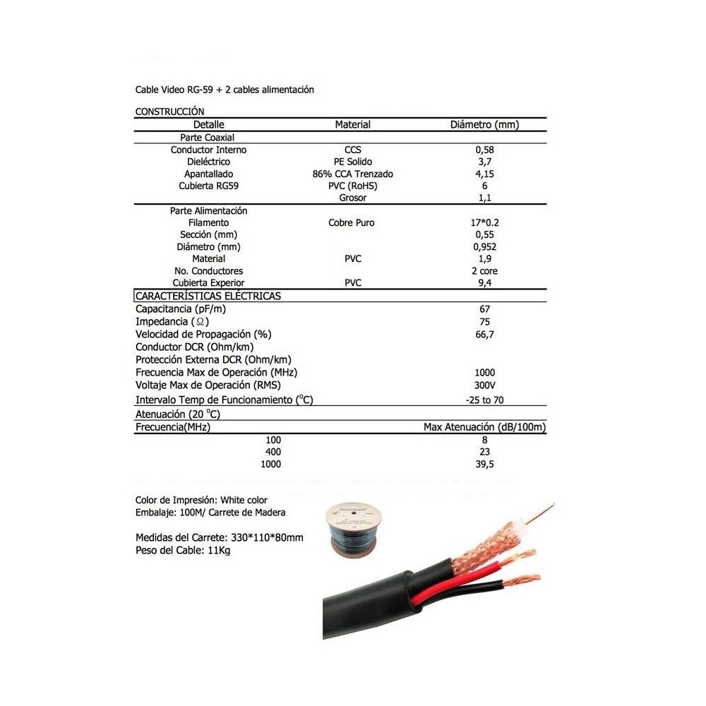 CABO CCTV RG59 +2X0.55mm (1MT)