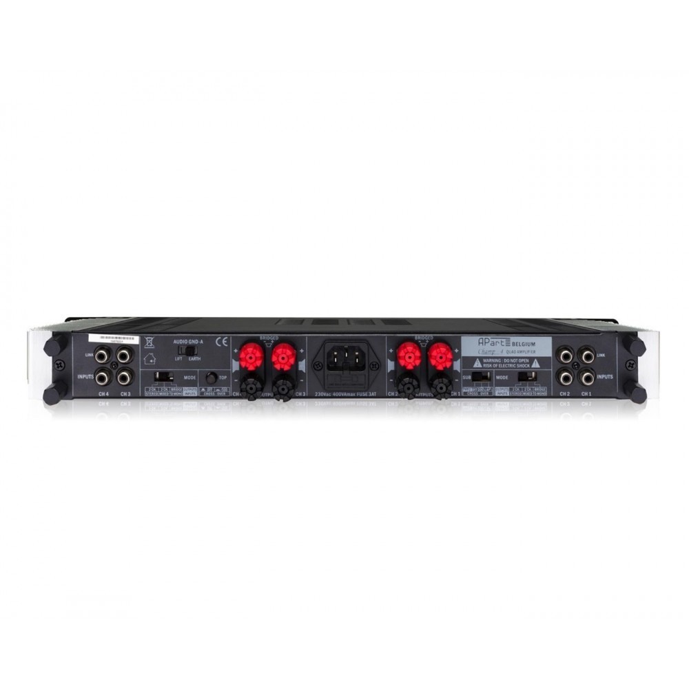 - O amplificador CHAMP-4 possui 4 canais de amplificação individuais, mas pode ser configurado em ponte para formar 2 canais estéreo ou até mesmo um sistema de som 2.1. Utilize dois canais como canais de subwoofer e os dois canais restantes para alimentar suas caixas acústicas principais, experimentando assim a pura potência musical do CHAMP-4. Esta é apenas uma das maneiras pelas quais você pode utilizar este amplificador quádruplo.