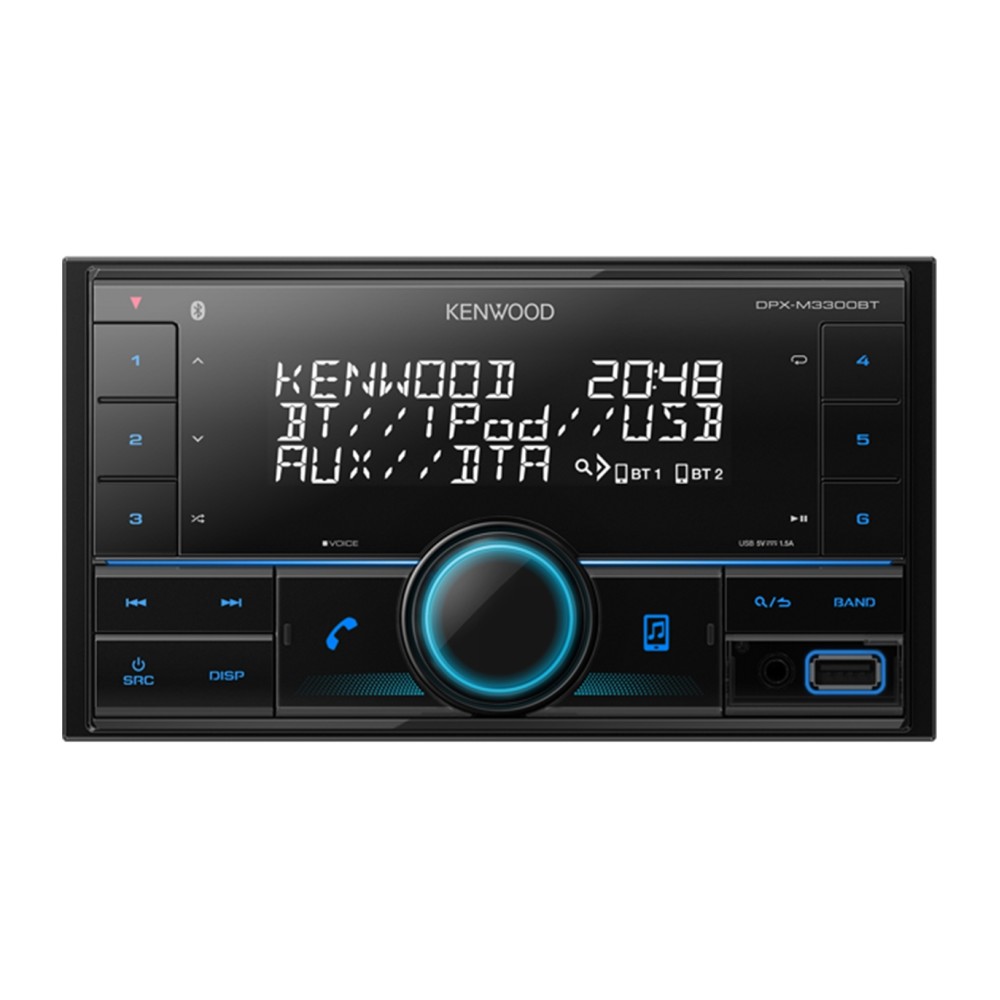 - Auto-rádio recetor digital 2 din Kenwood DPX-M3300BT com, entrada usb e auxiliar frontal, módulo bluetooth incorporado para chamadas em modo mãos-livres e streaming audio