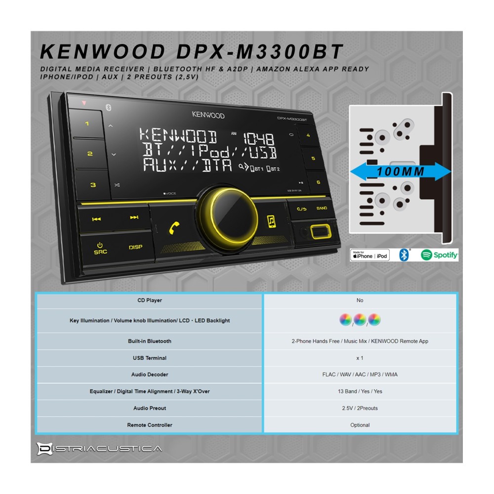 - Controla de forma intuitiva e prática o teu novo auto-rádio Kenwood DPX-M3300BT.