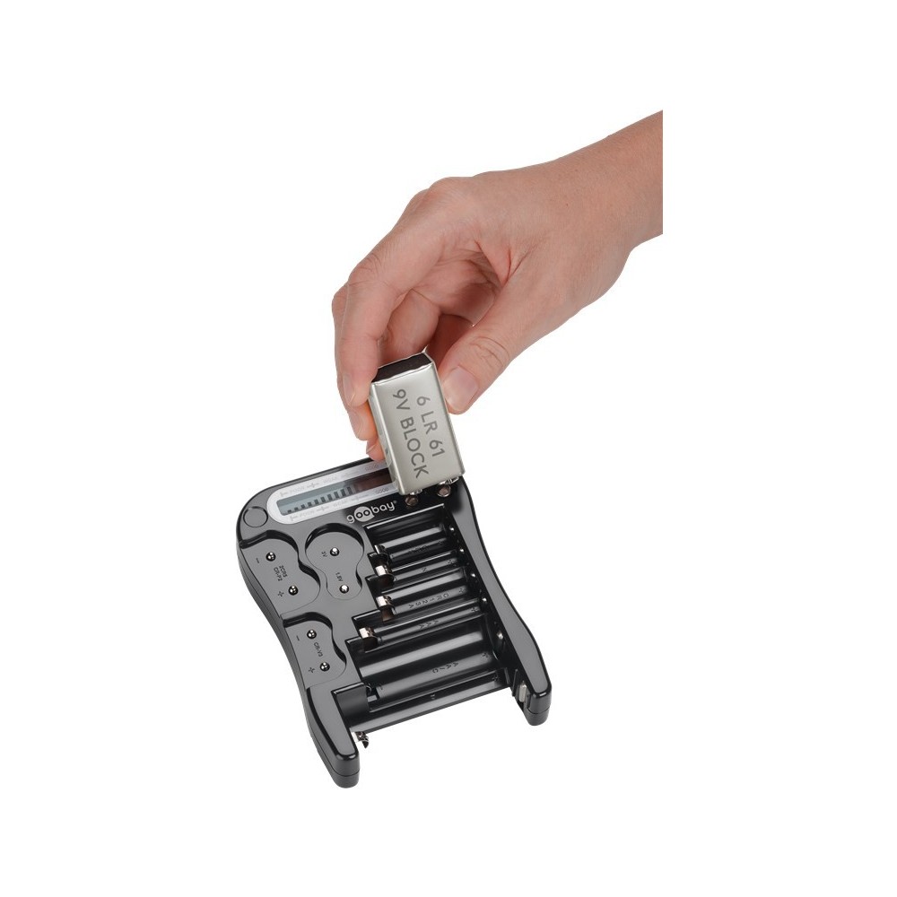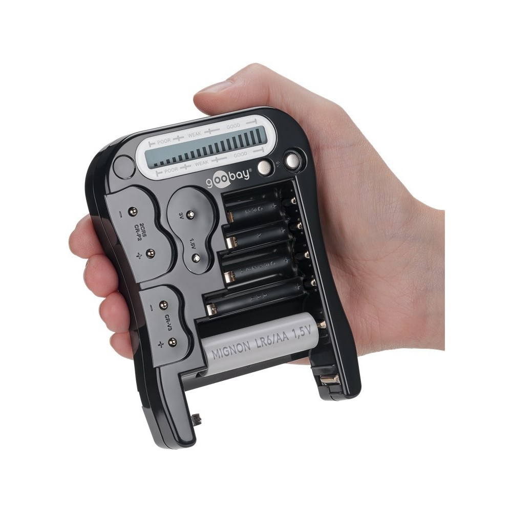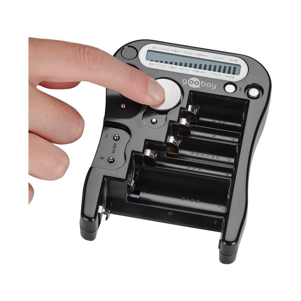 - Para baterias padrão e fotográficas, bem como todas as pilhas botão comuns (verificar o status de carregamento de muitas baterias recarregáveis comuns)
