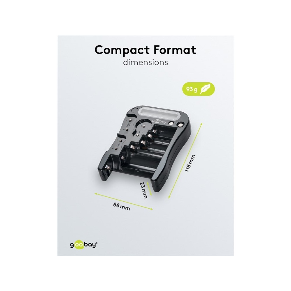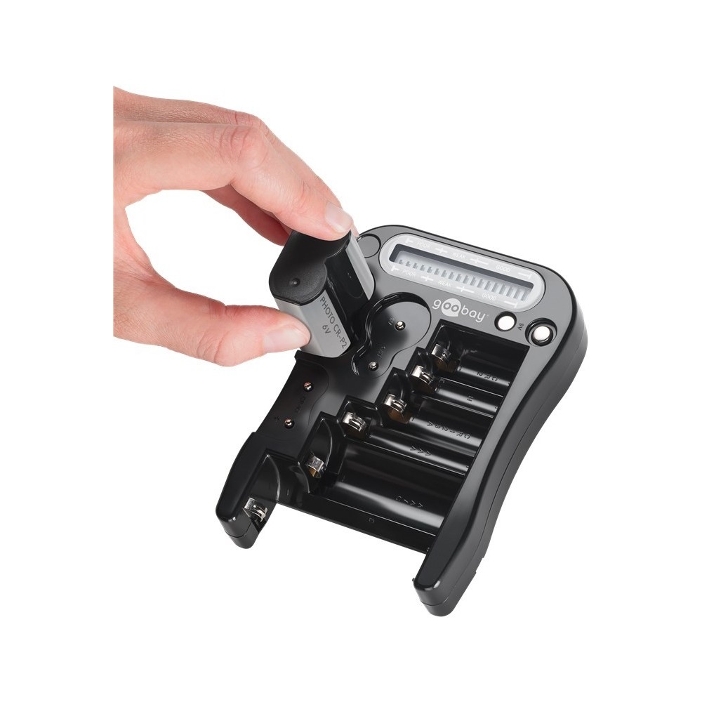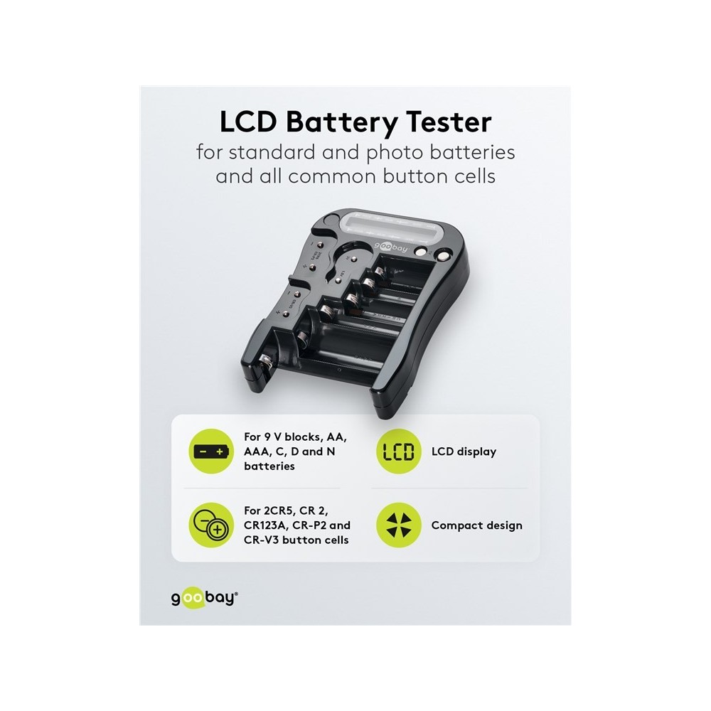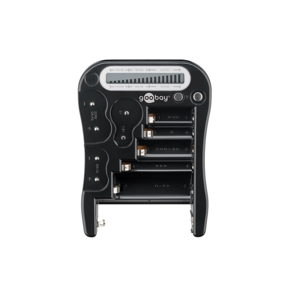 - Para baterias padrão e fotográficas, bem como todas as pilhas botão comuns (verificar o status de carregamento de muitas baterias recarregáveis comuns)