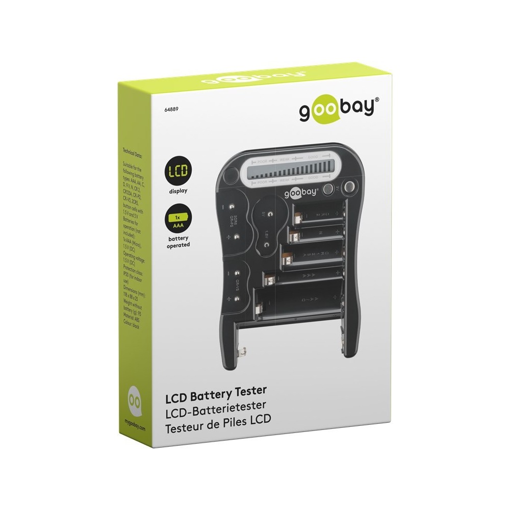 - O testador de bateria mostra rapidamente o status de energia de vários tipos de bateria, ajudando a distinguir entre uma bateria vazia e um dispositivo com defeito.