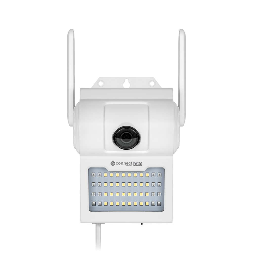 - Em primeiro lugar, a caixa durável, em conformidade com a classe de resistência IP66, merece atenção. A câmara de vigilância Connect C80 é à prova d'água e à prova de poeira. Além disso, não tem medo do calor ou do gelo. Tenha controle sobre o que está acontecendo no seu quintal em qualquer época do ano!