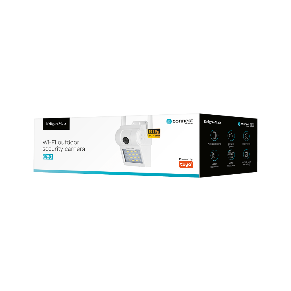 - A câmara sem fio Kruger&Matz Connect C80 é um complemento perfeito para o seu equipamento doméstico inteligente. Graças à conectividade Wi-Fi, o dispositivo pode ser controlado pelo aplicativo TuyaSmart, portanto, não importa onde você esteja, você pode verificar o que está acontecendo no seu quintal a qualquer momento.