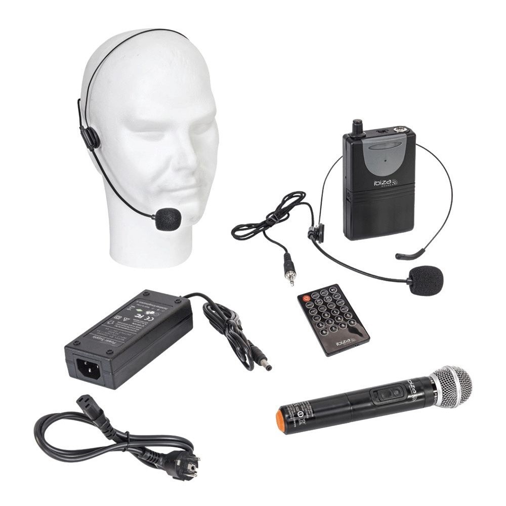 - 2 Microfones UHF s/ fios, comando, bat 12V 4.5A