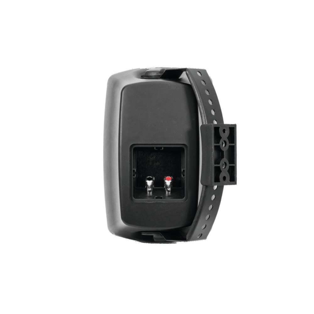 O sistema de 2 vias com um woofer de 13,5 cm e um tweeter de 1,5 cm está equipado com uma caixa de plástico com grelha metálica e tampas sobre as ligações.