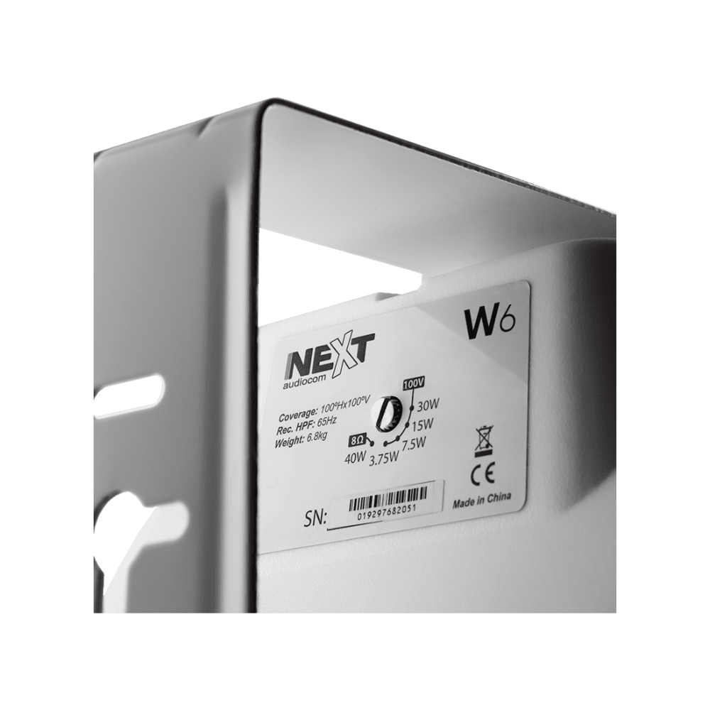 Os altifalantes de duas vias W6 com transformador de 100V embutido e tomada de 8Ω são perfeitos para aplicações distribuídas e de campo próximo em ambientes como lojas de comércio, restaurantes, bares, igrejas e ginásios. As baixas frequências são reproduzidas por um woofer de radiação direta de 6,5” com cone de polipropileno, enquanto a seção de alta frequência é baseada num tweeter de titânio. O design do altifalante com guia de ondas melhora a dinâmica e a eficiência, trazendo detalhes em tudo o que você ouve, reduzindo os reflexos que podem colorir o som. Um suporte em U está incluído e apoiará sua instalação na parede ou no teto.
