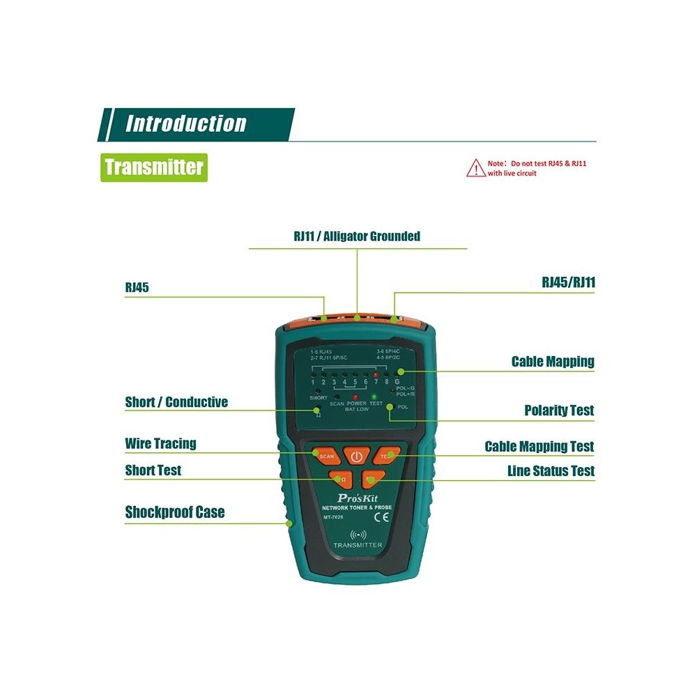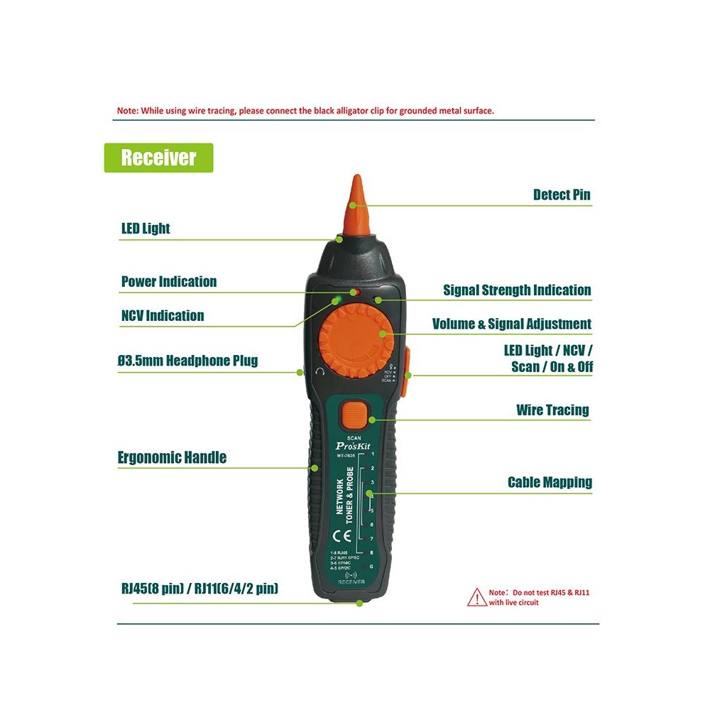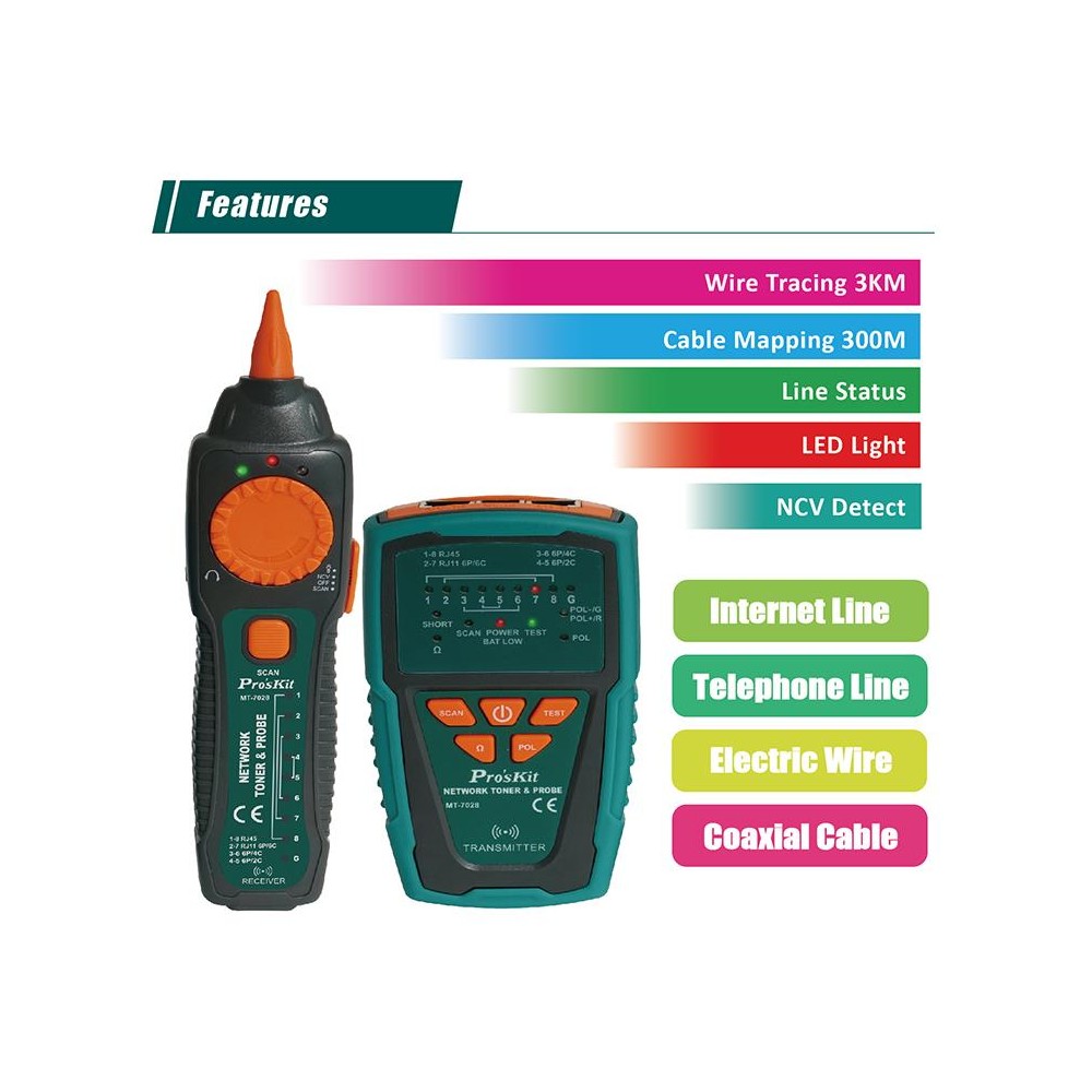 Testador com gerador tons e continuidade, PROSKIT MT-7028