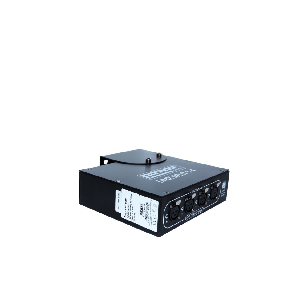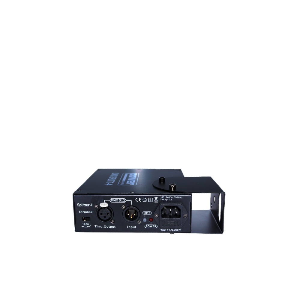 - Divisor DMX compacto e discreto que permite dividir o sinal de entrada DMX em quatro canais diferentes.
