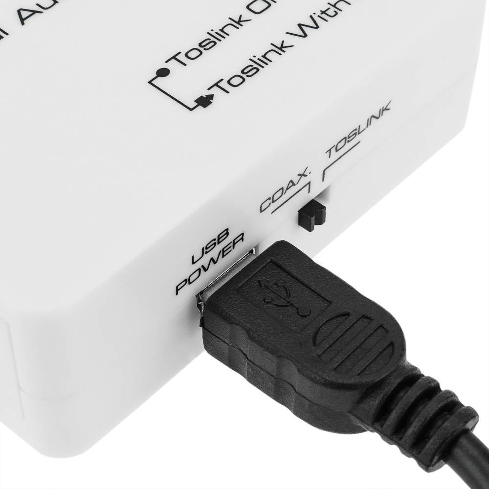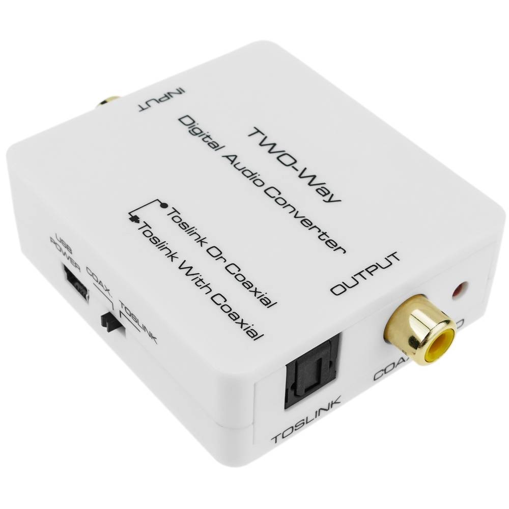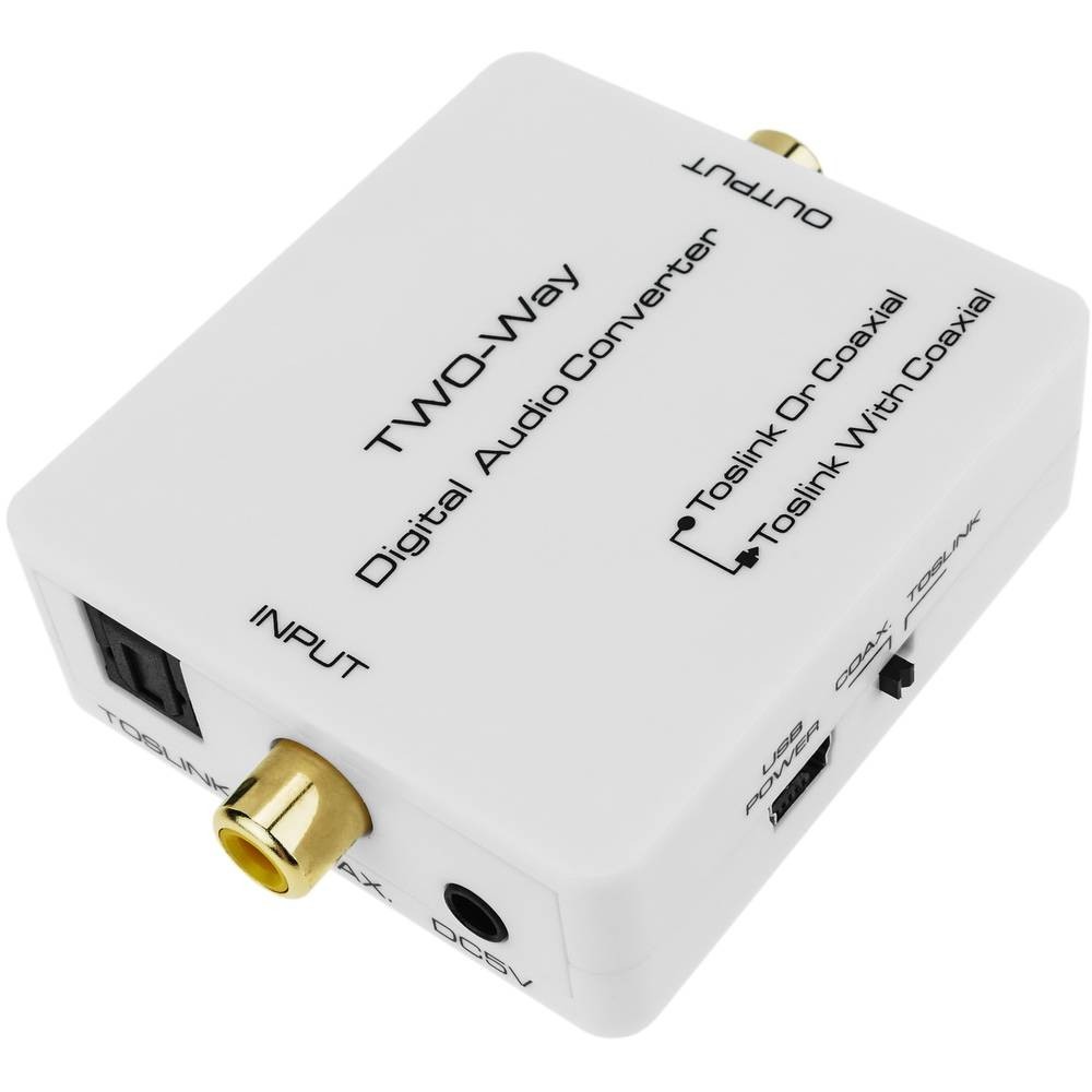 - Suporta dois tipos de conversões: coaxial para toslink + coaxial e toslink para coaxial + toslink;