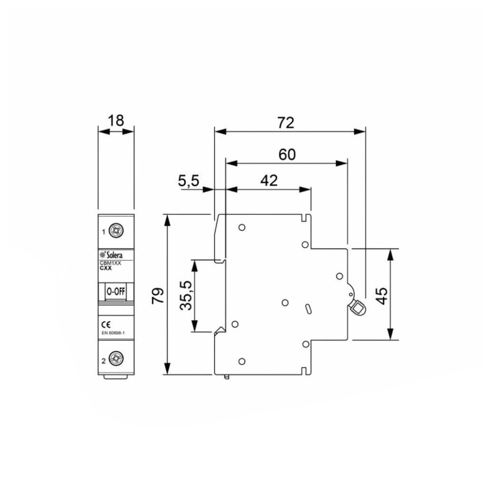 - Tipo de pólos: 1P+N, norma IEC60898