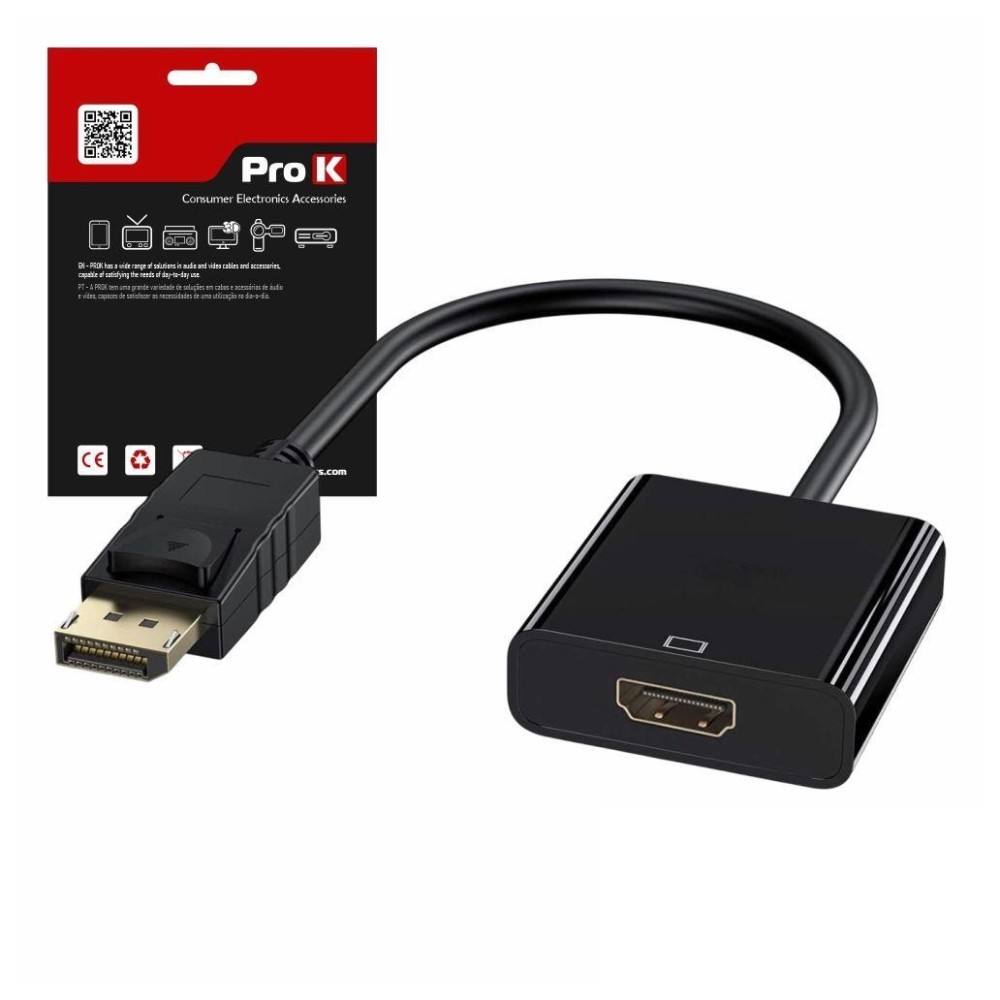 Cabo Displayport Macho / HDMI Fêmea, 20cm, da marca PROK