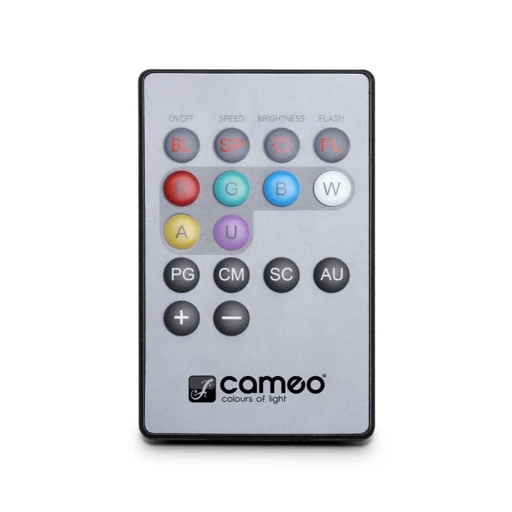 A Cameo TriBar 200 IR possui um display retroiluminado com 4 teclas de função e um controle remoto infravermelho para operação manual conveniente.