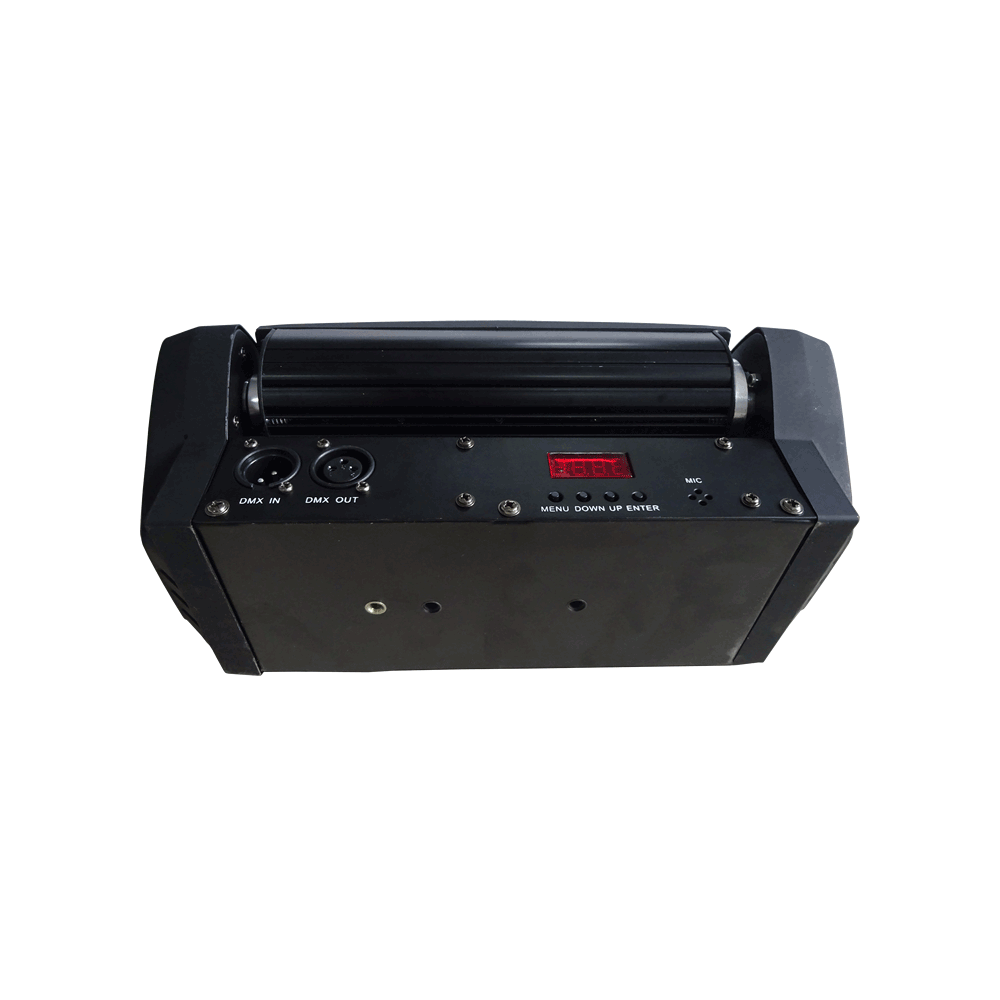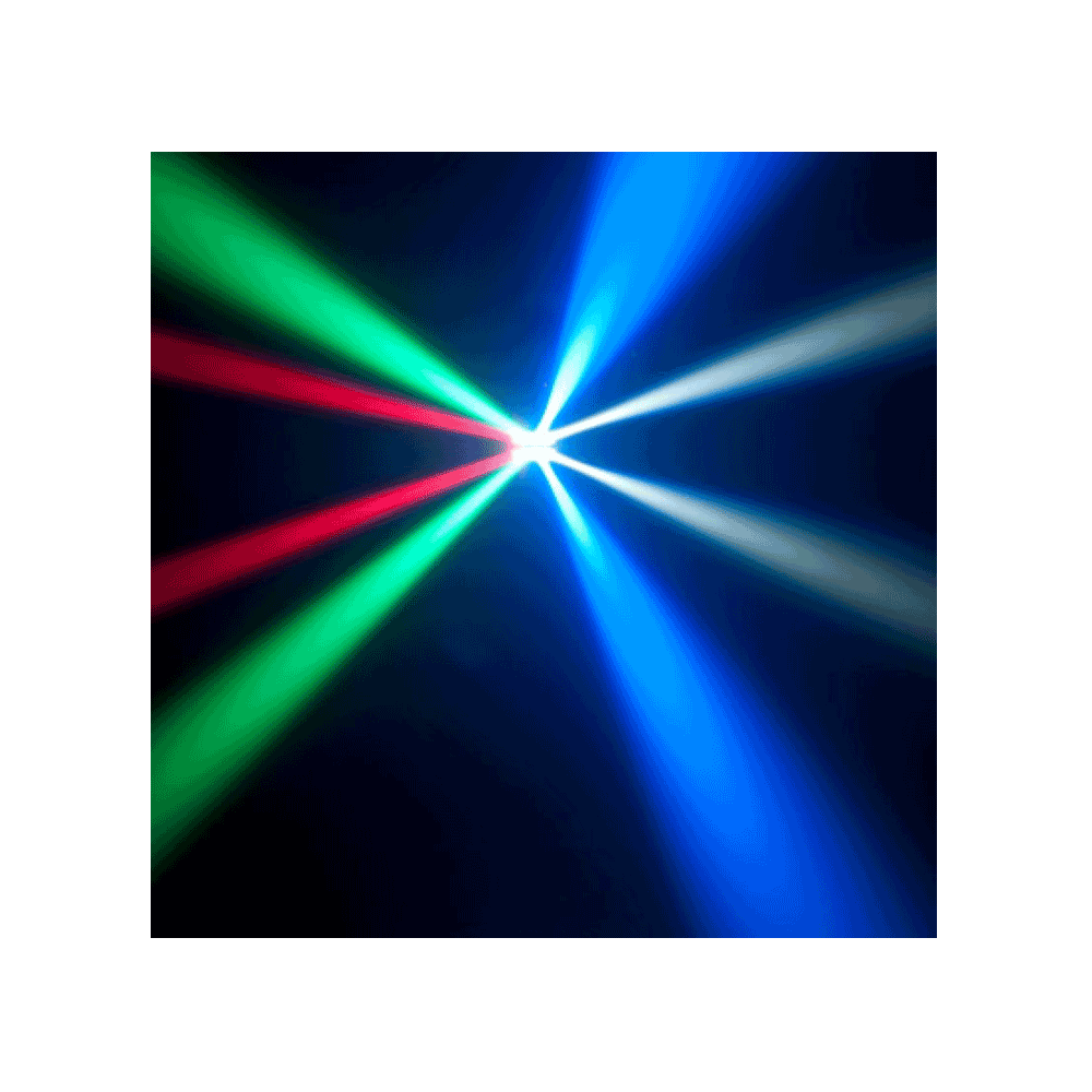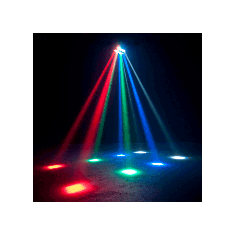 Efeito de iluminação de duas barras individuais, cada uma equipada com 4 projetores LED CREE RVBB de 3W.