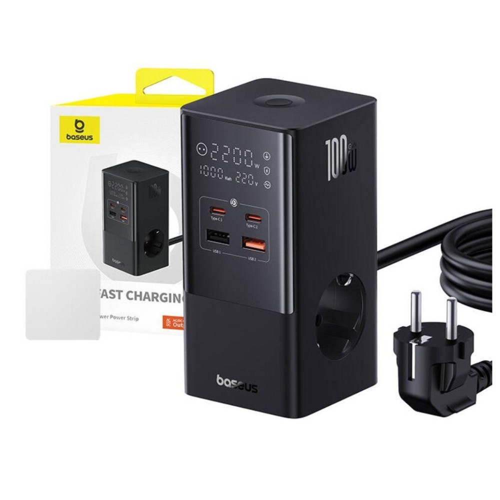 Estação de Carregamento com 2x Schuko / 2x USB-A / 2x USB-C, 100W, da marca BASEUS