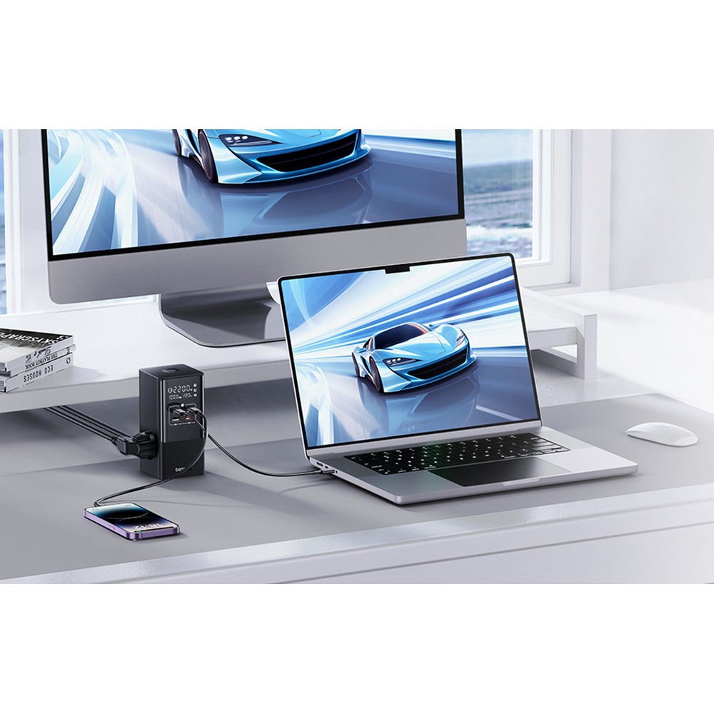 Carregue o seu dispositivo mais depressa do que nunca. O carregador oferece até 100 watts de potência, pelo que pode carregar o seu MacBook Pro de 16" até 45% em apenas 30 minutos. A extensão eléctrica Baseus baseia-se na mais recente tecnologia GaN, que reduziu o seu tamanho em 38%, aumentando a eficiência da dissipação de calor e, consequentemente, proporcionando maior segurança. A partir de agora, pode carregar ainda mais dispositivos, como smartphones, auscultadores, tablets e comandos de jogos.