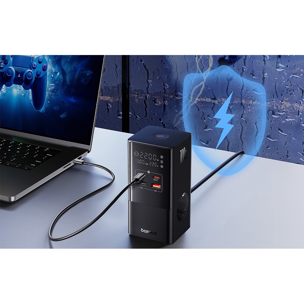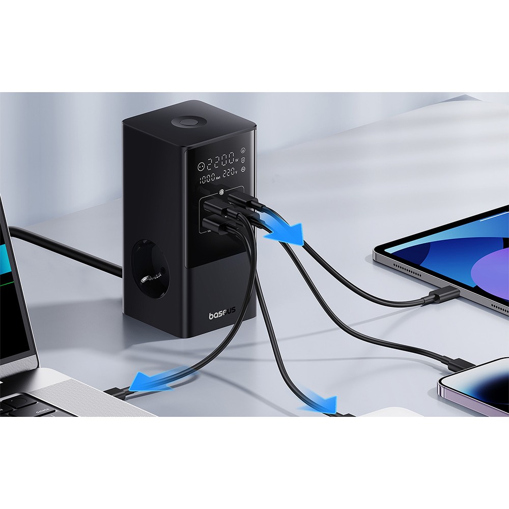 Descubra possibilidades ilimitadas com a extensão eléctrica PowerCombo de 35 W da Baseus. O dispositivo está equipado com 2 tomadas CA, 2 portas USB-C e 2 portas USB-A, para que possa alimentar e carregar até 6 dispositivos em simultâneo. A tecnologia GaN permitir-lhe-á experimentar uma velocidade totalmente nova de renovação de energia, e o visor LED fornecerá informações actuais sobre a tensão, a potência, o nível da bateria e o modo de proteção. Opte pela proposta Baseus e obtenha mais opções, poupando espaço!