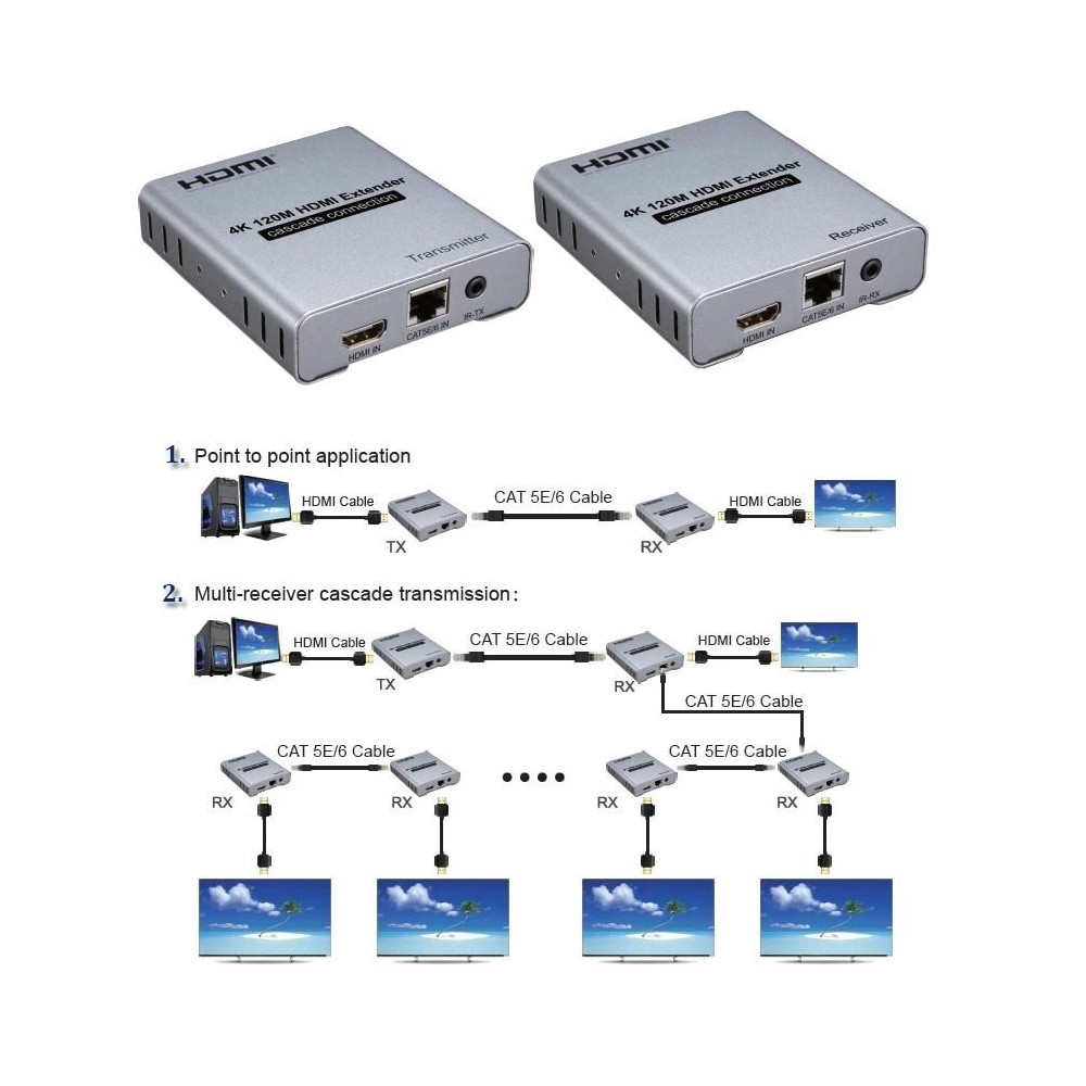 Extensor HDMI e IR, com opção de link para outros dispositivos em cascata sem a necessidade de hardware externo.