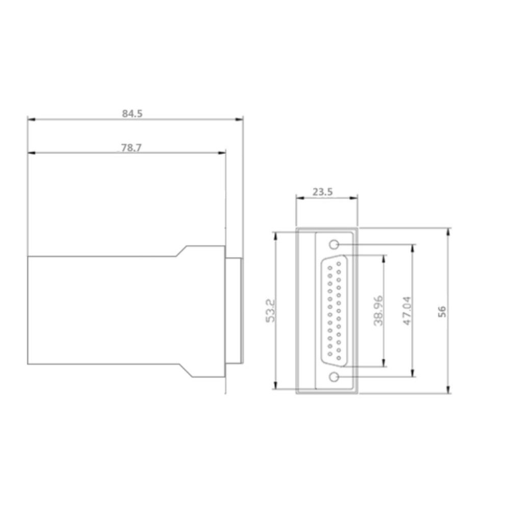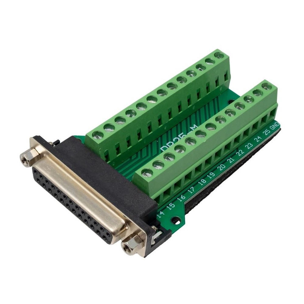 Conector DB25 com terminais, permite a conexão manual do cabo e do conector.
