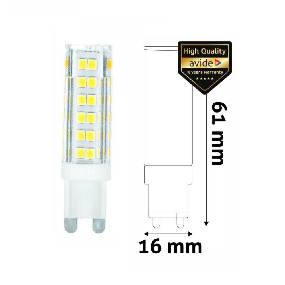 Lâmpada LED G9, 4.2W, 230V, 4000K, 450lm, da marca AVIDE