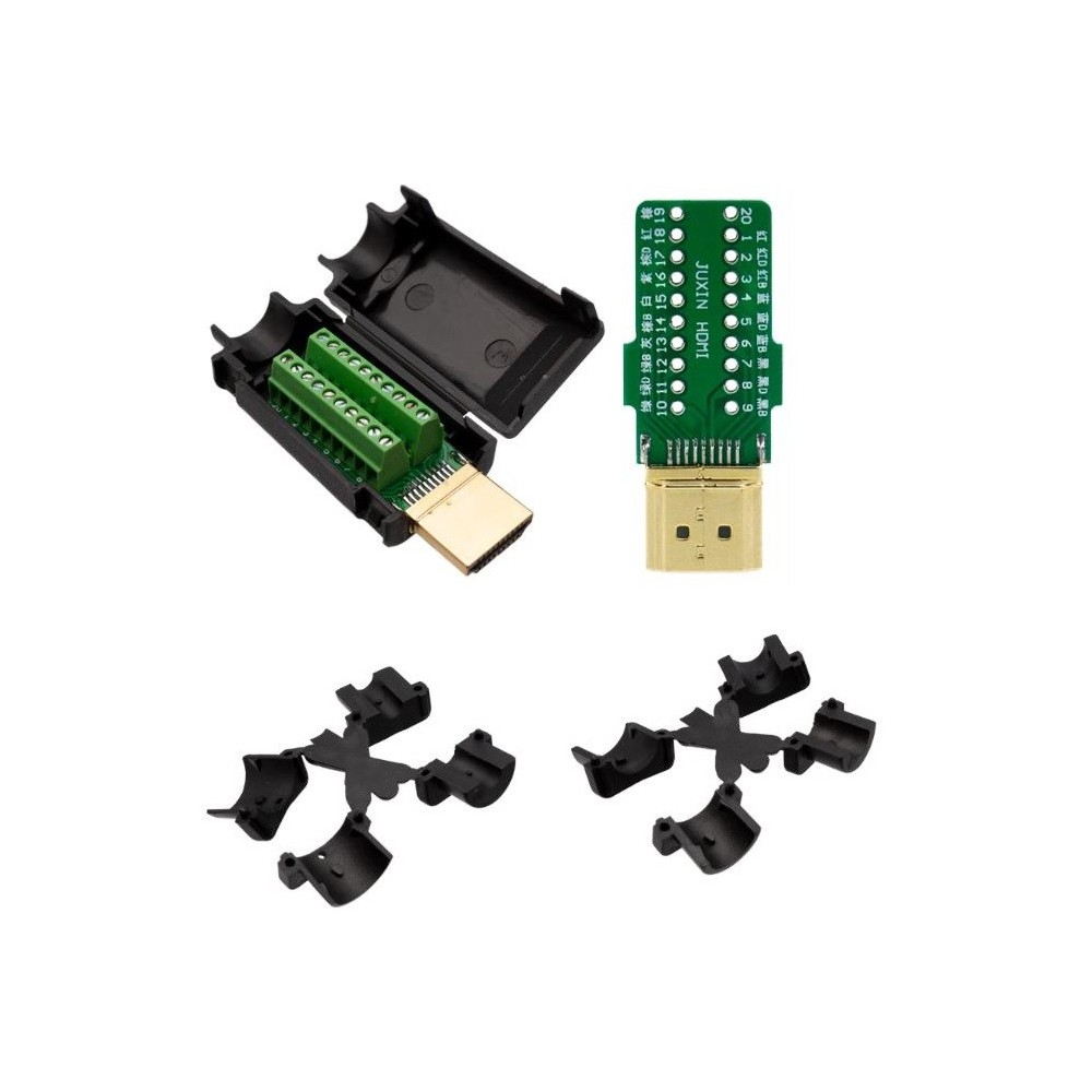 Conector HDMI com terminais, permite conexão manual de cabo e conector.