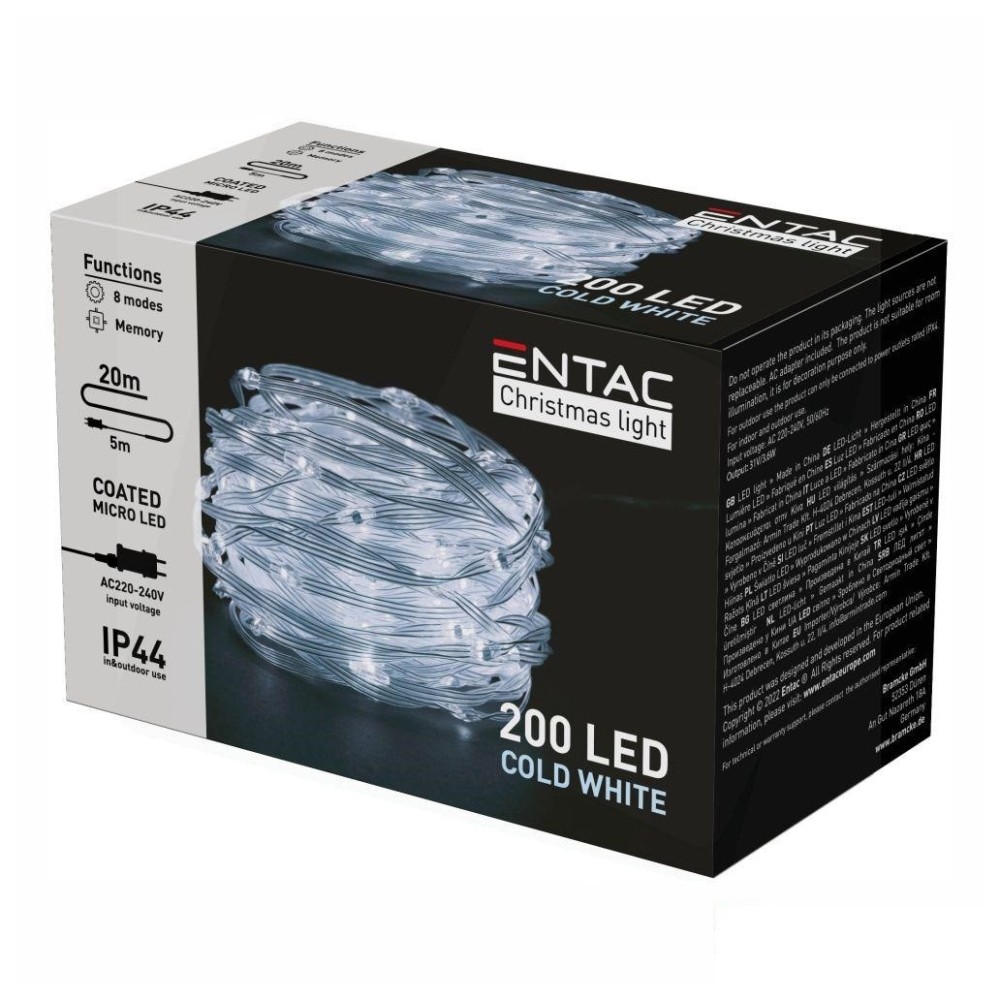 LUZES NATAL 200 LEDS BRANCO FRIO IP44 20MTS