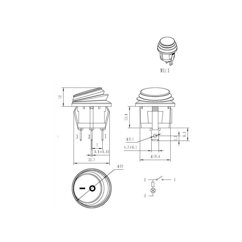 INTERRUPTOR DPST 2 POSICOES OFF-ON 6.5A 250V IP65 VERDE