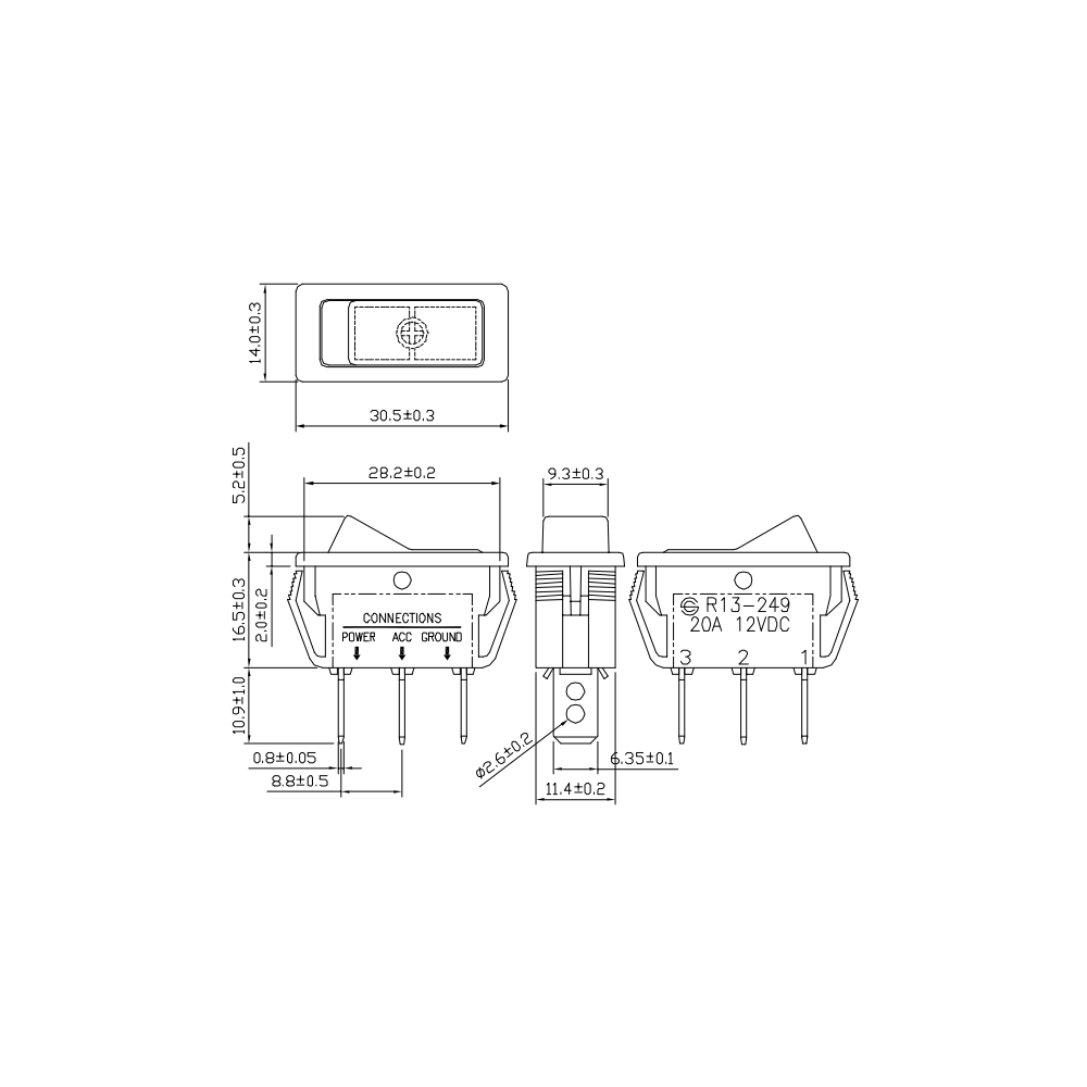 INTERRUPTOR BASCULANTE LUMINOSO 1C/2P 20A/12VDC VERMELHO