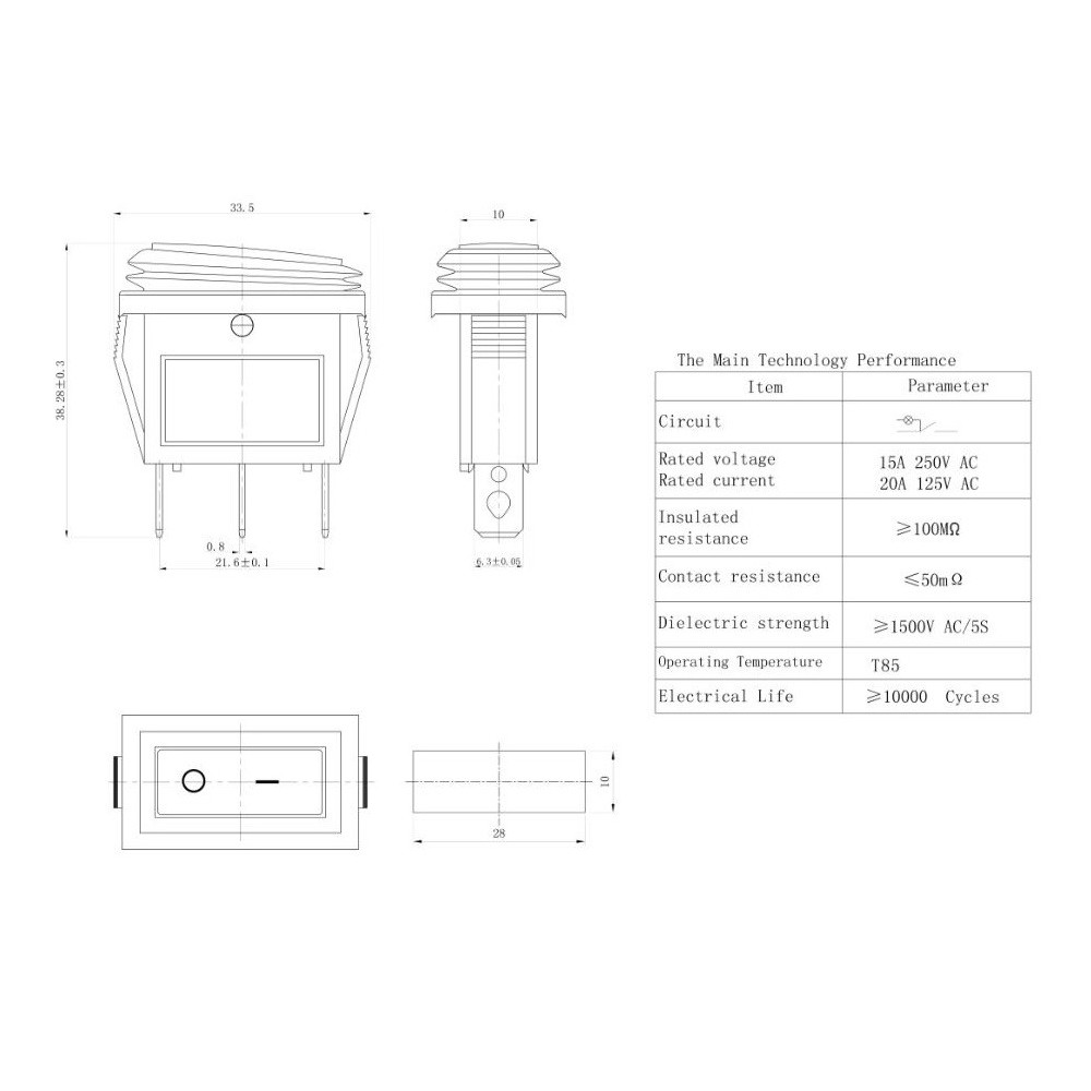 Interruptor 3P. Impermeável, Retangular, Vermelho