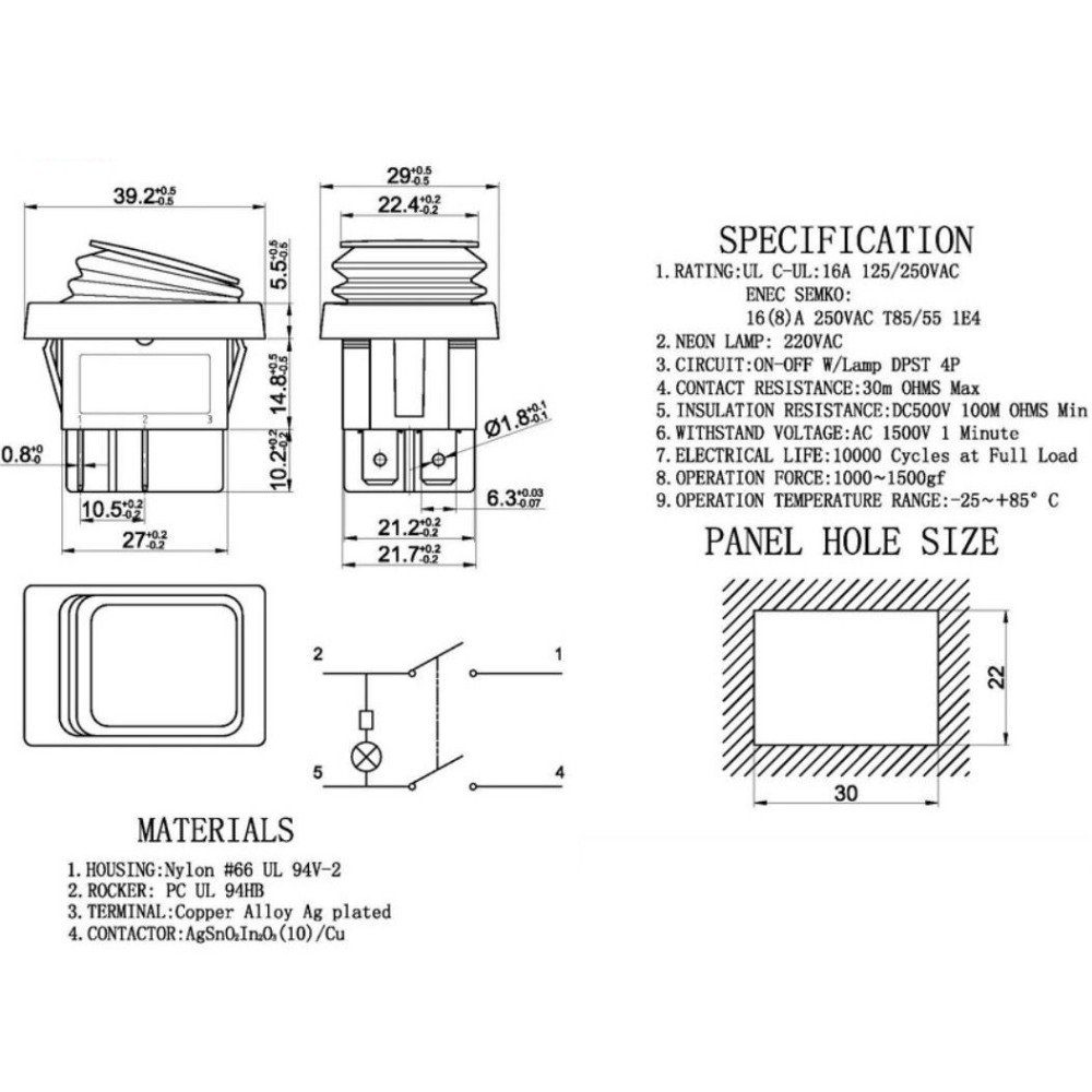 - 4p ON / OFF interruptor impermeável;