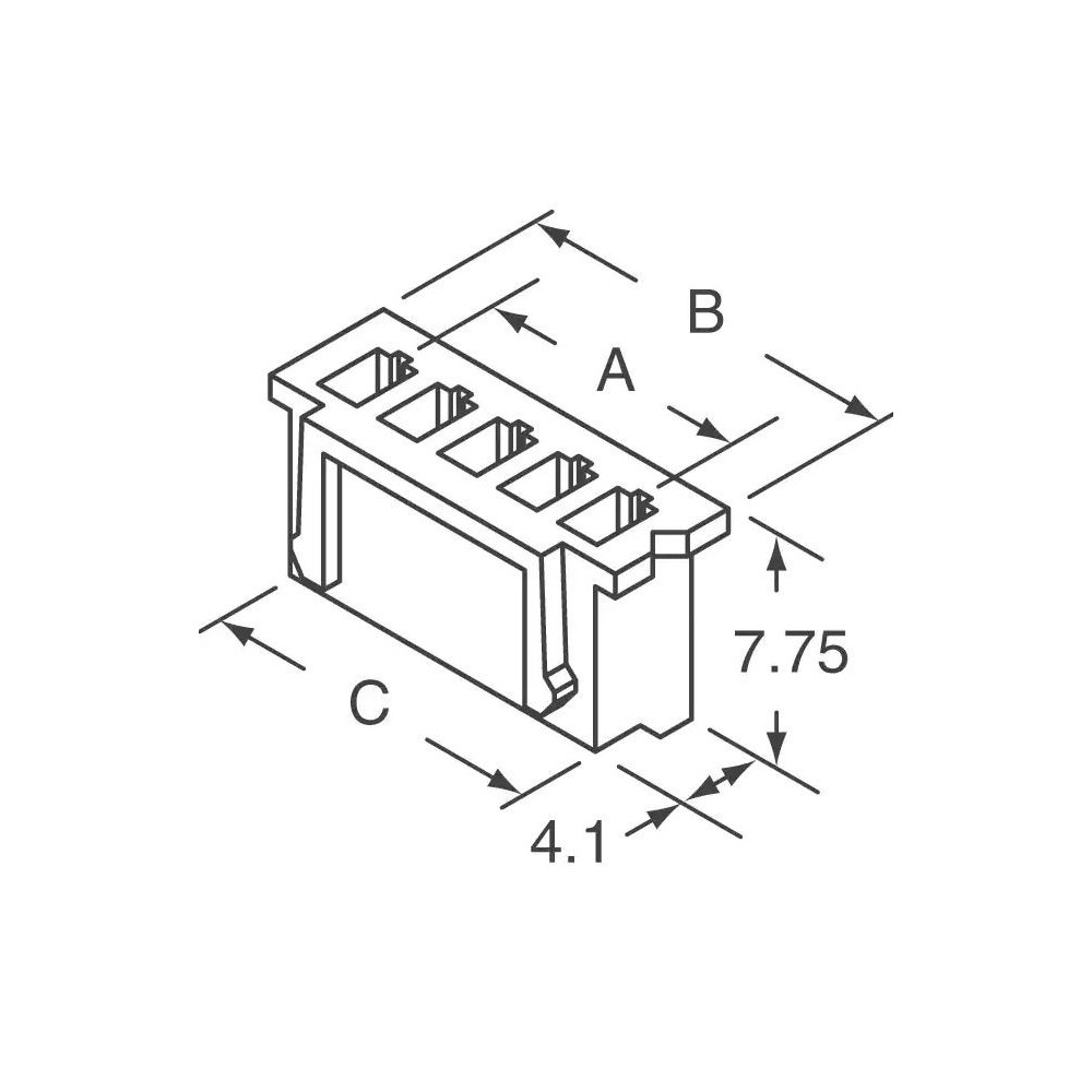 Ficha fio-placa, 2.50mm, 5 pinos (1x5), fêmea, sem terminais, JST XHP-5