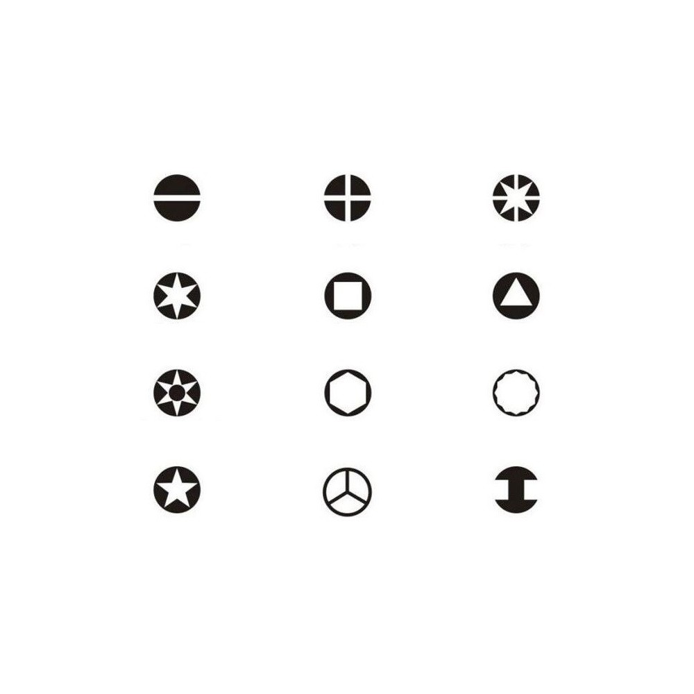 '"-1.5,2.0, 2.5, 3.0, 3.5" "U 2.6" "+" 1.7,2.0,2.5,3.0,3.5 "* 2.0; - Estrela de seis raios "T3, T4, T5, T6, T7, T8 , T9, T10, T15, T20";