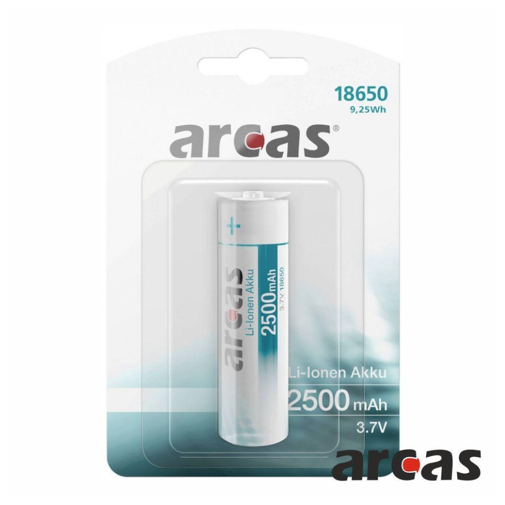 Bateria lítio recarregável 18650 de 3.7V, 2500mAh, da marca ARCAS