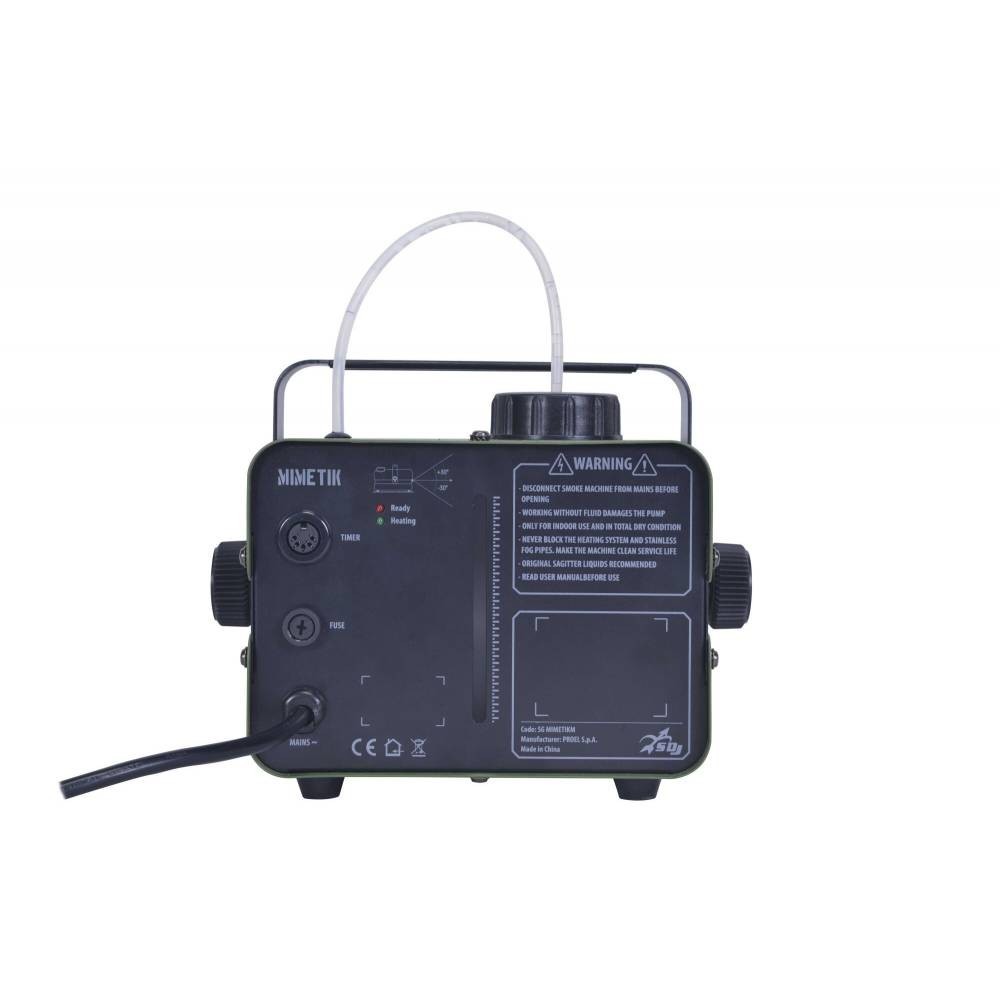- MIMETIK L é uma máquina de fumos, com um design novo e inovador, adequada para aplicações em ambientes médios e pequenos como clubes e palcos, onde é necessário um efeito ambiente com projeção de fumos adequada. A máquina tem potência de 1200W e é equipada com controle de fio com temporizador e controle remoto sem fio.