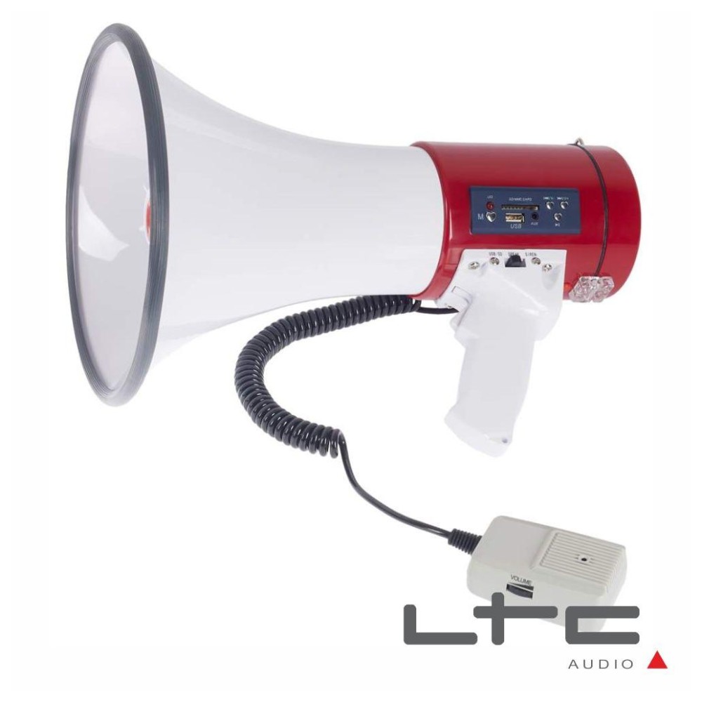 Megafone com sirene, com microfone e leitor USB/SD (leitor MP3), 60W, Mic Removível, da marca Ltc