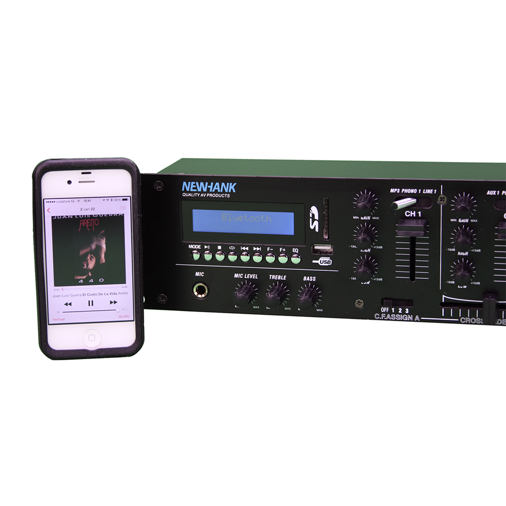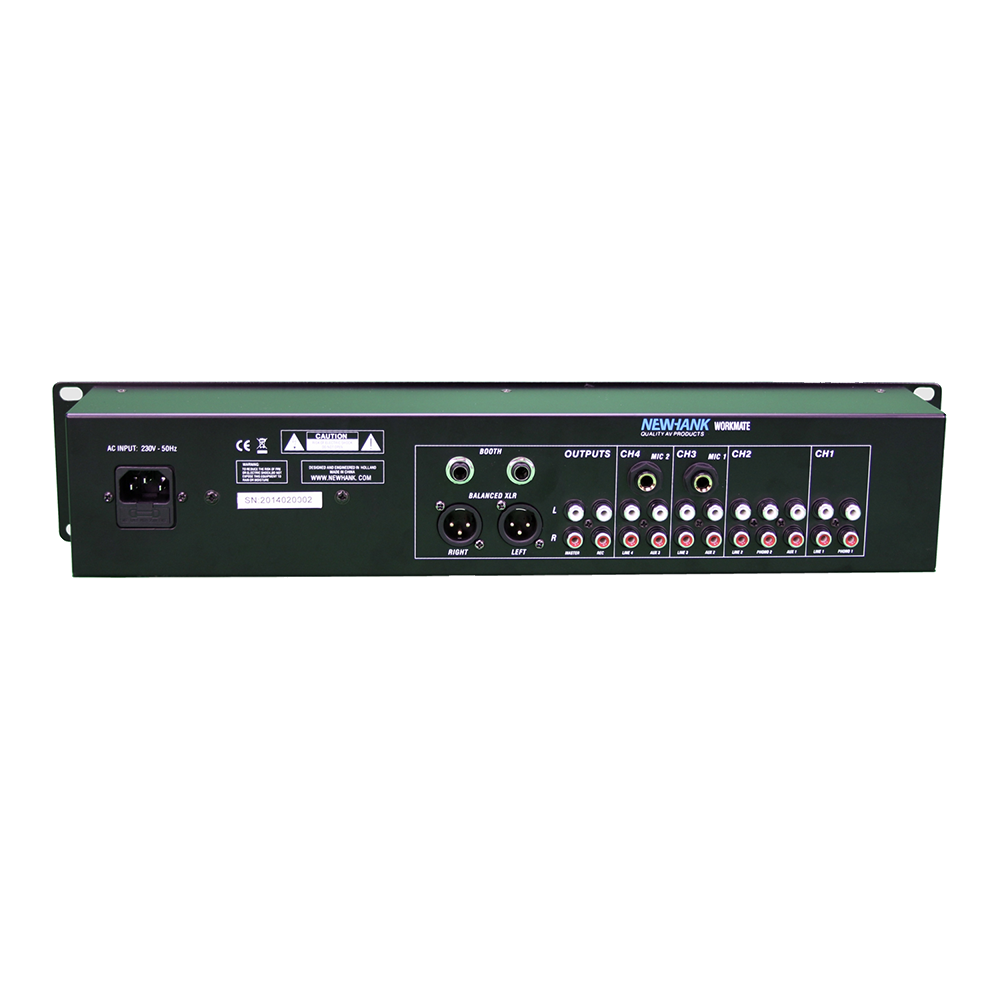 O NewHank WORKMATE - é uma mesa de mistura, pré-amplificador estéreo completo, e reprodutor de media inteligente num pacote compacto. O WORKMATE ocupa apenas 2 HE de espaço em rack - tornando-o fácil de instalar! Oferece-lhe um controle máximo as sobre suas fontes de música, como dispositivos de satélite e cabo, CD-Players ou qualquer outro tipo de player ou mixers, gira-discos (2 pré-amplificadores de tphono disponíveis), microfones, etc.