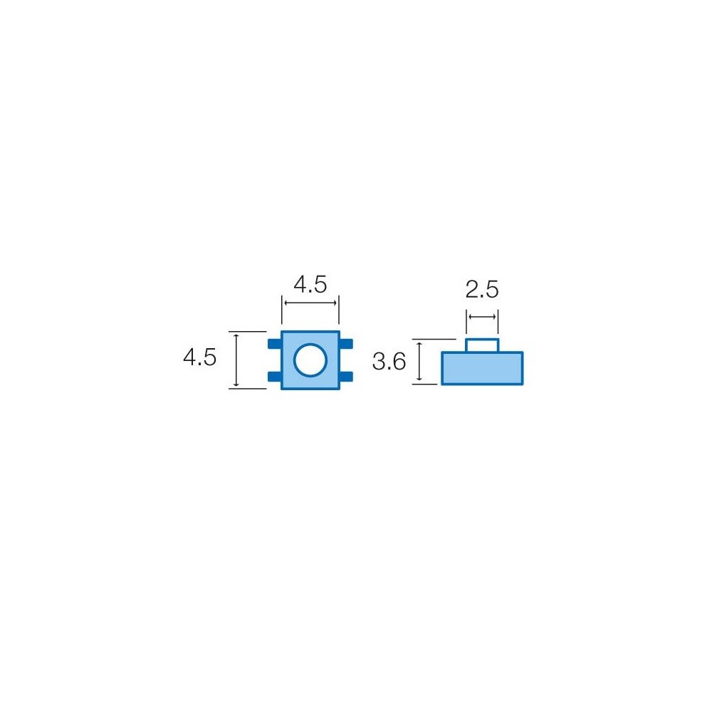 - Tamanho: 4,5 x 4,5 mm, altura total 3,6 mm
