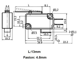 Comutador Micro-Switch com Patilha média, (ON)-ON, 250V/16A, 3 Terminais