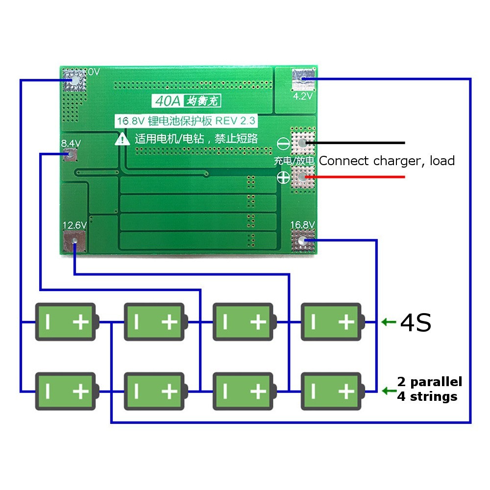 Carregador de Bateria de Lítio, PCB, BMS 18650, com equilíbrio, 14,8V-16,8V, 4S/40AMP.