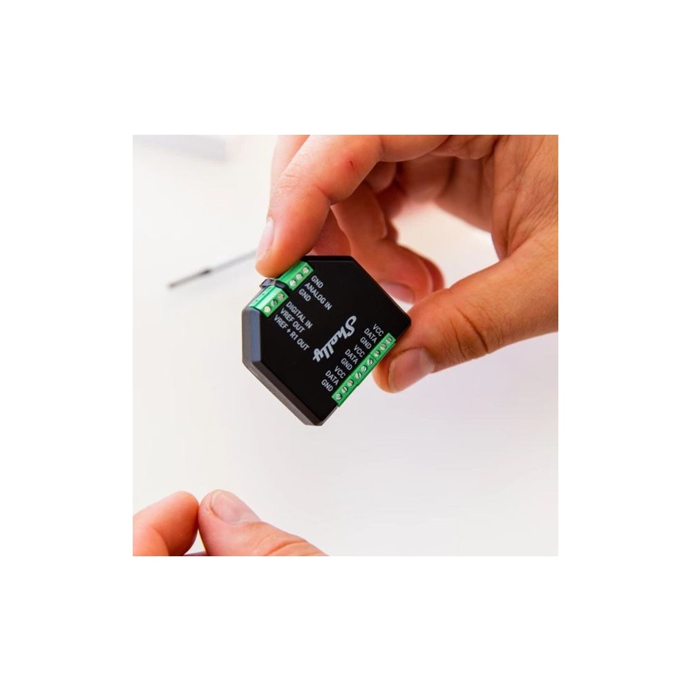 - O Shelly Plus Add-on é um módulo que se encaixa num dispositivo da série Plus da Shelly e que faz a interface com vários sensores, como temperatura, luminosidade, movimento, potenciómetros, estado, entre outros. Além disso, é compatível com uma ampla variedade de sensores Arduino, o que o torna uma opção interessante para aqueles que procuram soluções para problemas mais complexos.