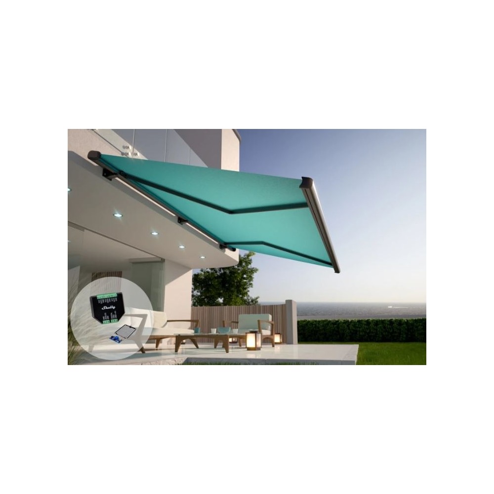 Utilizando um Shelly Plus 2PM, combinado com um Shelly Plus AddOn e um sensor de vento, poderás protegê-lo do vento, fechando-o automaticamente, quando o vento começar a ficar muito forte.