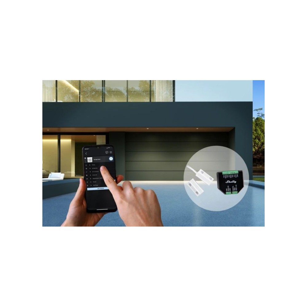 Com um Shelly Plus 1, é possível controlar a abertura e fecho de um portão de garagem, através do seu contacto seco, no entanto, ele não é capaz de fornecer-te informação acerca do estado do portão. Com a adição do Shelly Plus Add-on e um sensor magnético, é possível verificar, em tempo real, na aplicação, se o portão está completamente fechado ou não.