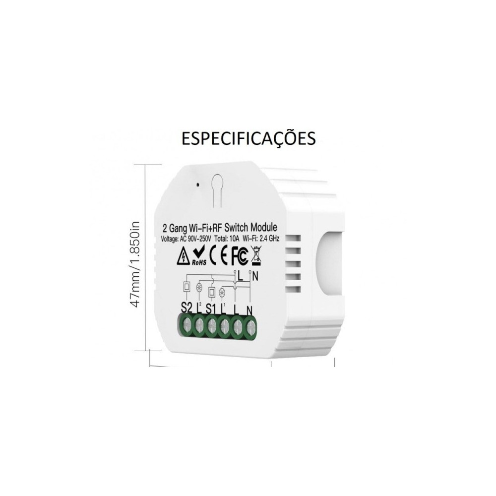Módulo de Iluminação de 2 Canais – Wifi + Rf 433 Tuya/Smartlife da marca ZIGBEE.