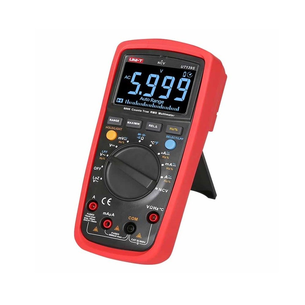 A série UT139 são multímetros digitais CAT III 600V projetados para eletricistas. Seu recurso NCV pode verificar efetivamente o status elétrico através da medição da intensidade do campo EM. Os novos modelos UT139E/S incluem recursos especiais como LoZ (ACV) para medição de tensão ‘fantasma’. Sua barra analógica de 31 segmentos integrada também oferece aos eletricistas uma melhor representação visual dos resultados da medição.