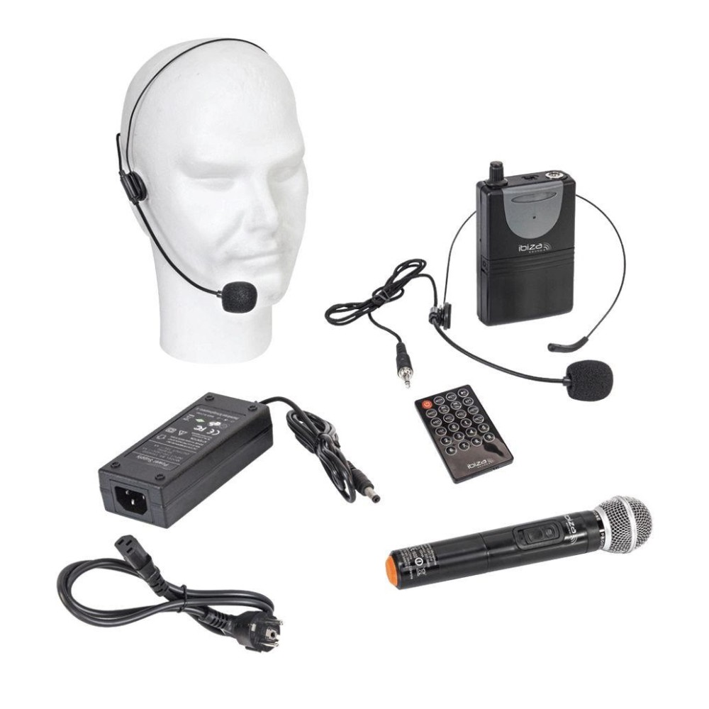 Coluna Amplificada 12", 700W, USB / SD / REC / Bateria, 2 Microfones VHF s/ fios, Preta, da marca IBIZA